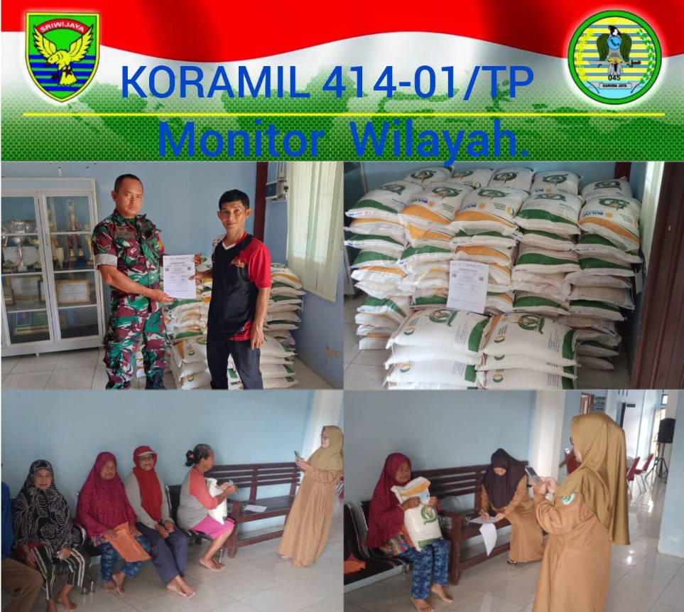 Tanjung Pandan, OkeyBung.com – Anggota Koramil 414/Tanjung Pandan Serda I. Putu Swastika Babinsa Desa Sungai Padang melaksanakan monitoring pembagian beras kepada warga binaan, Senin (6/11/2023).