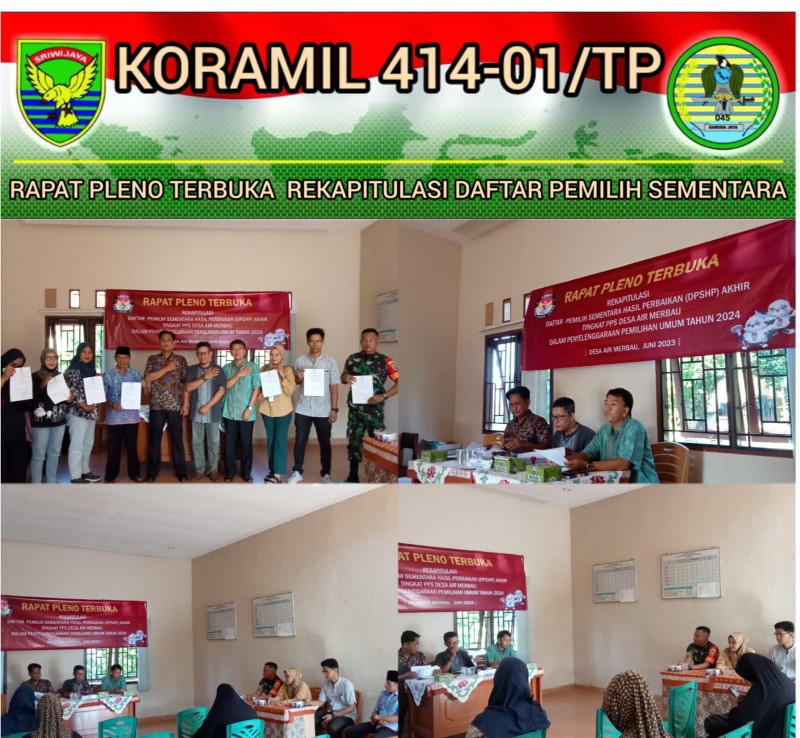 Tanjung Pandan, Okeybung.com – Koramil 414-01/Tanjung Pandan Babinsa Desa Air Merbau Kopda Feri Bangsawan menghadiri Rapat Pleno Terbuka Rekapitulasi Daftar Pemilih Sementara Hasil Perbaikan (DPSHP) Akhir Perubahan Pemilih Tingkat Desa Air Merbau, Jumat (2/6/2023).