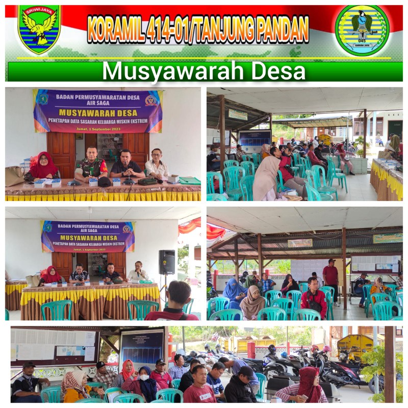 Tanjungpandan, Okeybung.com – Anggota Koramil 414-01/Tanjungpandan Serka Sarman Babinsa Desa Air Saga melaksanakan Rapat Musyawarah Desa (Musdes) tentang penetapan data sasaran keluarga kemiskinan ekstrem.
