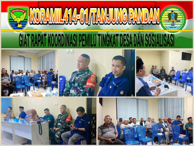 Sijuk, OkeyBung.com – Anggota Koramil 414-01/Tanjung Pandan, Sertu Fringki Juhanes, Babinsa Desa Batu Itam menghadiri acara Sosialisasi Penetapan Tentang Lokasi Pemasangan Alat Peraga Kampanye (APK) dan Lokasi Kampanye Pemihan Umum Tahun 2024, Senin (27/11/2023).