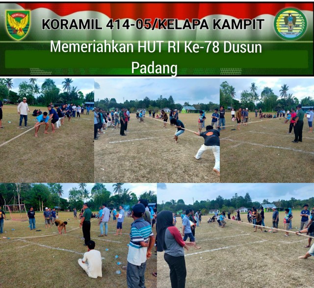 Kelapa Kampit, Okeybung.com – Anggota Koramil 414-05 /Kelapa Kampit Serda Kusnadi Babinsa Desa Mentawak, melaksanakan monitoring kegiatan perlombaan tarik tambang tingkat dusun yang bertempat di Lapangan Bola Persikal Dusun Padang Desa Mentawak Kecamatan Kelapa Kampit Kabupaten Belitung Timur, Kamis (31/8/2023).