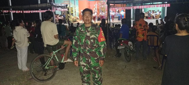 Sijuk, Okeybung.com – Anggota Koramil 414-01/Tanjungpandan Sertu I Kadek Edi P. Babinsa Desa Pelepak Pute monitoring kegiatan pentas seni dalam rangka memeriahkan HUT RI ke 78 tahun 2023, di Balai Seni Dusun Balitung Desa Pelepak Pute Kecamatan Sijuk Kabupaten Belitung, Jum’at (18/8/2023).