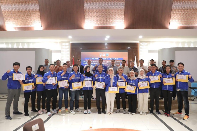 Pj Gubernur Sugito menyampaikan apresiasi ini dalam acara Ramah Tamah Bersama Atlet, Pelatih, dan Ofisial PON XXI Aceh-Sumut 2024 di Gedung Mahligai, Rumah Dinas Gubernur, Air Itam, Pangkalpinang, Rabu (3/10/2024).