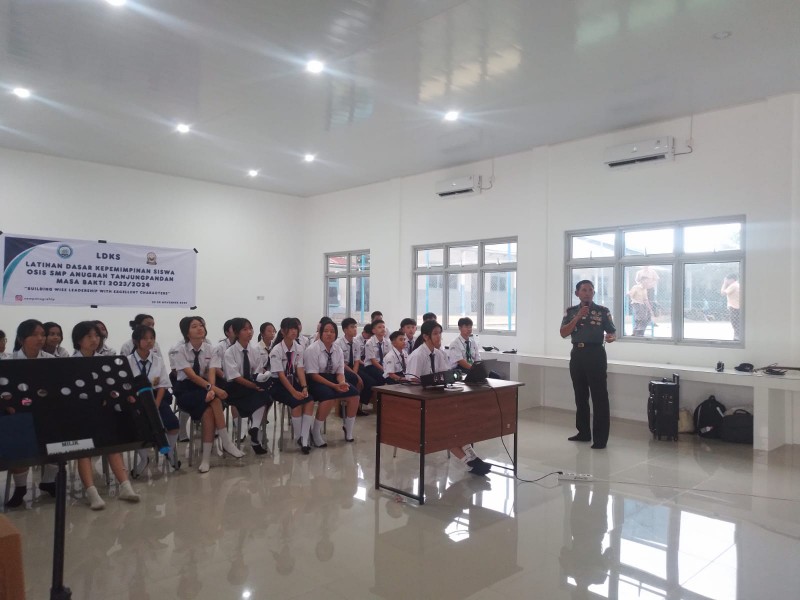 Tanjung Pandan, OkeyBung.com – Danramil 414-01/Tanjung Pandan memberikan materi kepemimpinan dasar kepada OSIS SMP Anugrah, bertempat di SMP Anugrah Tanjung Pandan, Kamis (23/11/2023).