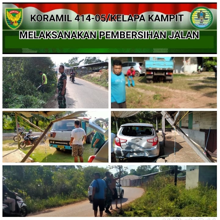 Untuk mencegah terjadinya kecelakaan selanjutnya, Angota Koramil bersama RT setempat gotong royong membersihkan rumput yang tinggi di badan jalan .