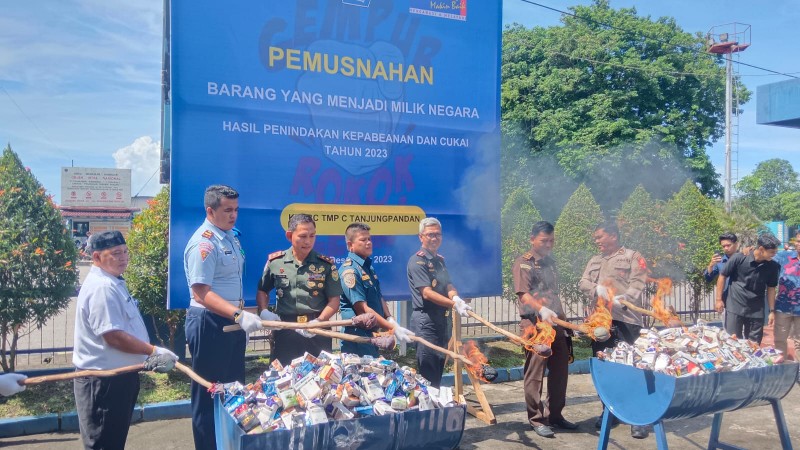 Selanjutnya dilanjutkan pemusnahan barang bukti yang menjadi barang sitaan Bea cukai Tanjung Pandan yang tidak mentaati aturan Cukai kepada negara.