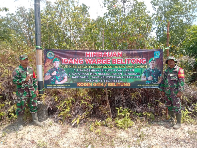 Setelah pendirian posko Karhutla juga memasang Banner/Spanduk Himbauan Dandim 0414/Belitung Letkol Inf Herik Prasetiawan dengan isi penyampaian sebagai berikut himbauan Idang Warga Belitong, Yuk Kite Cegah Kebakaran Hutan dan Lahan.