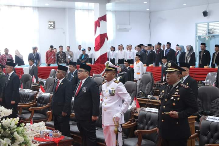 SUNGAILIAT, OkeyBung.com – DPRD Kabupaten Bangka menggelar rapat Paripurna Istimewa Mendengarkan Pidato Kenegaraan Presiden Republik Indonesia, dalam rangka memperingati HUT ke 79 kemerdekaan Republik Indonesia, Selasa (16/8/2024).