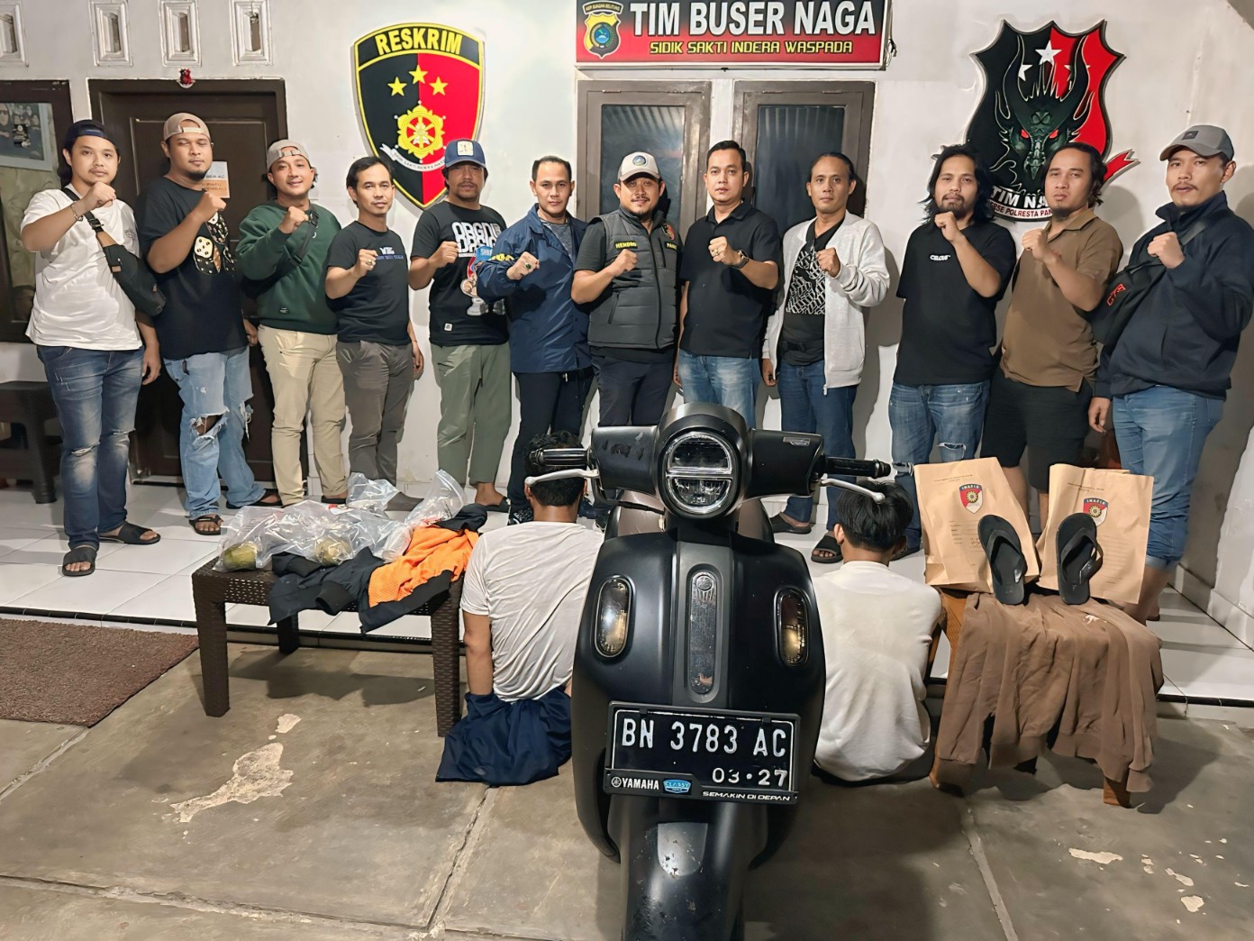 Kedua pelaku ditangkap di lokasi berbeda, yakni di depan Apotek K-24 Kelurahan Tua Tunu dan di sebuah rumah makan Padang di Kelurahan Pintu Air, Kota Pangkalpinang. Penangkapan dilakukan tim gabungan Satreskrim Polresta Pangkalpinang bersama Jatanras Ditreskrimum Polda Babel pada Sabtu (16/8/2025) malam.