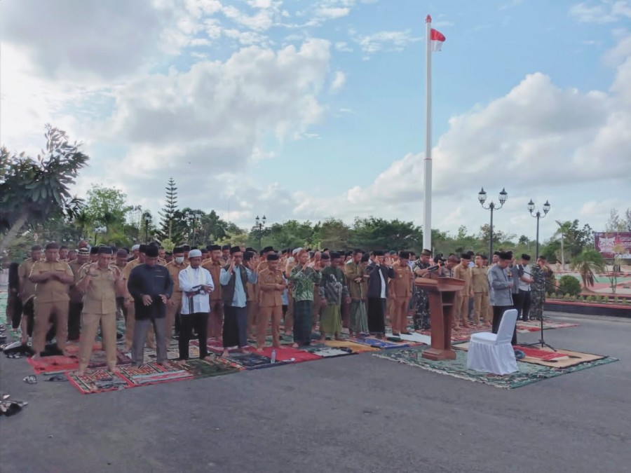 Toboali, Okeybung.com – Sehubungan dengan kondisi cuaca kemarau yang berkepanjangan di wilayah Bangka Selatan, Pemerintah Kabupaten Bangka Selatan menggelar Sholat Istisqa berjamaah di Halaman Kantor Bupati Bangka Selatan, Senin (16/10/2023).
