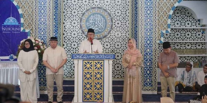 Pj. Gubernur menyampaikan rasa terima kasihnya kepada seluruh keluarga besar Almarhum H. Soeprapto Soeparno beserta istri, Hj. Nur’aini, karena telah memberikan kontribusi besar dengan membangun Masjid Nur’aini untuk masyarakat Desa Kurau Barat.