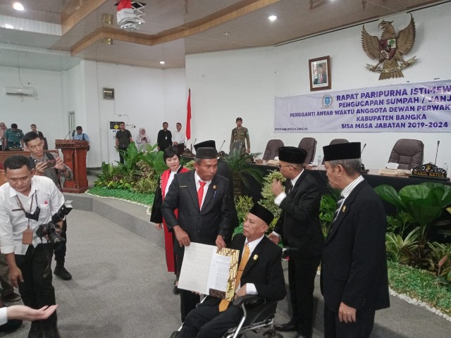 Ketua DPRD Kabupaten Bangka, Iskandar mengatakan penyelenggaraan rapat paripurna istimewa ini, merupakan tindak lanjut dari keputusan Gubernur Kepulauan Bangka Belitung tentang peresmian, pemberhentian dan pengangkatan penggantian antar waktu anggota DPRD Kabupaten Bangka sisa masa jabatan tahun 2019 – 2024.