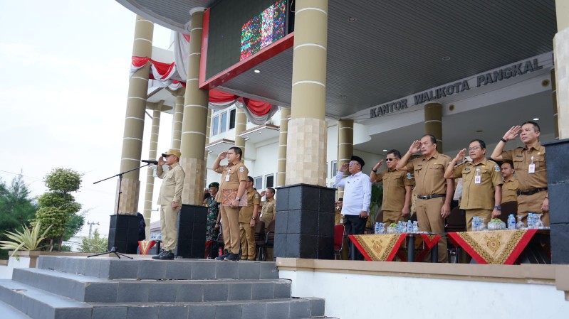 Upacara diikuti oleh Forkopimda Pangkalpinang, kepala OPD di lingkungan Pemkot Pangkalpinang serta jajaran.