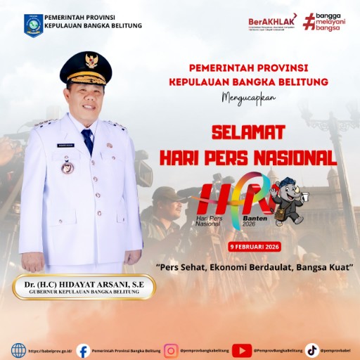 Pada momentum Hari Pers Nasional ini, Gubernur Hidayat turut menyampaikan ucapan selamat kepada seluruh jurnalis di Indonesia, terutama insan pers di Kepulauan Bangka Belitung yang selama ini menjadi mitra strategis pemerintah daerah dalam mempublikasikan berbagai capaian pembangunan.