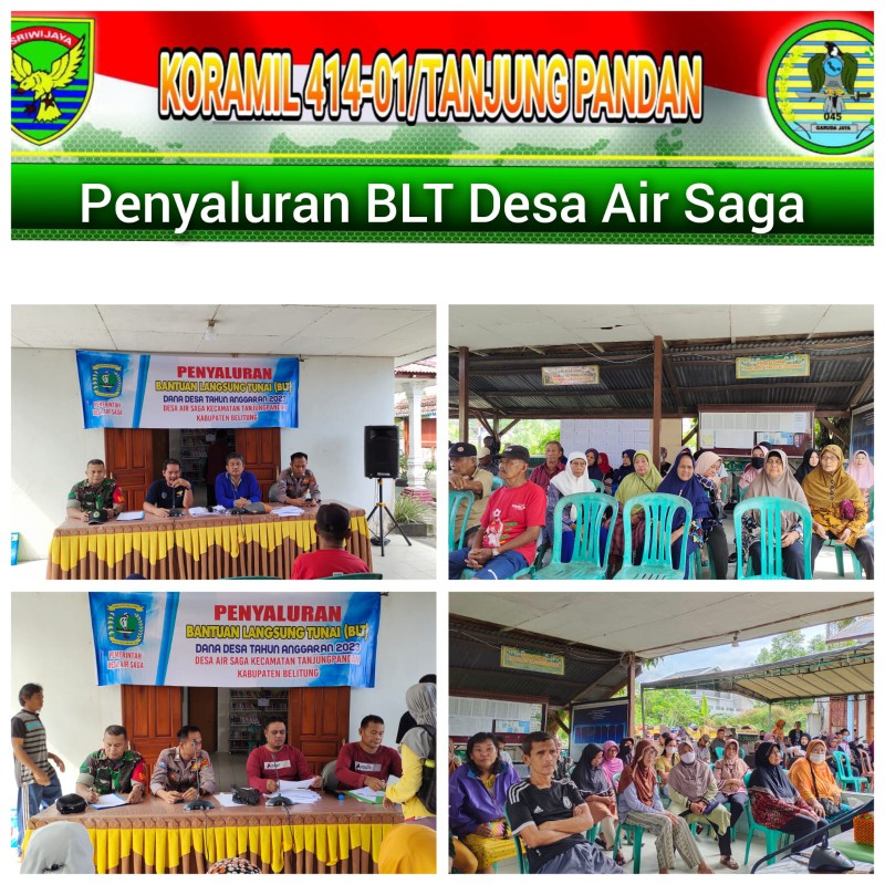 Tanjung Pandan, OkeyBung.com – Anggota Koramil 414-01/Tanjung Pandan Babinsa Desa Air Saga Serka Sarman melaksanakan pendampingan penyaluran manfaat Bantuan Langsung Tunai Dana Desa (BLT-DD) Bulan ke 11 Tahun Anggaran 2023.