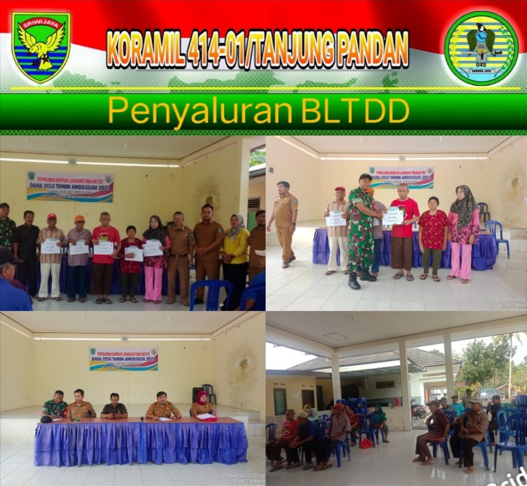 Tanjungpandan, OkeyBung.com – Anggota Koramil 414-01/Tanjungpandan Babinsa Desa Buluh Tumbang Serda Pangki H.T melaksanakan pendampingan penyaluran manfaat Bantuan Langsung Tunai Dana Desa (BLT-DD), Senin (23/10/2023).