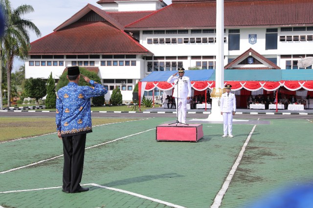 Pangkalpinang, OkeyBung.com – “Selamat Hari Otonomi Daerah (Otda) ke-XXVIII Tahun 2024 semoga Allah senantiasa memberikan petunjuk, bimbingan, perlindungan dan pertolongan kepada kita semua dalam upaya membangun bangsa dan negara yang kita cintai”. Ucapan yang merupakan sambutan Menteri Dalam Negeri RI pada Peringatan Hari Otonomi Daerah ke-XXVIII ini, dibacakan oleh Penjabat (Pj) Gubernur Kepulauan Bangka belitung (Kep. Babel) Safrizal ZA yang bertindak sebagai Inspektur dalam Upacara Peringatan Hari Otda ke-XXVIII di Lapangan Kantor Gubernur Kep. Babel Senin (29/4/2024).