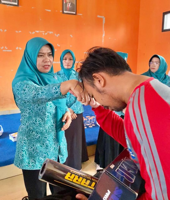 Pada kunjungan ini Safriati Safrizal memenuhi janjinya kepada warga UPTD-PSBLH atas permintaan bantuan sarana prasarana seperti peralatan olahraga, perlengkapan harian seperti cukur rambut serta peralatan pertanian.