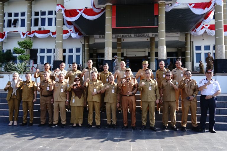 PANGKALPINANG, OKEYBUNG.COM – Penjabat (Pj) Wali Kota Pangkalpinang, Budi Utama memimpin apel gabungan perdana jajaran Pemkot Pangkalpinang seusai dilantik oleh Pj Gubernur Bangka Belitung beberapa waktu lalu. Apel dilaksanakan di halaman kantor wali kota setempat, Senin (5/8/2024).