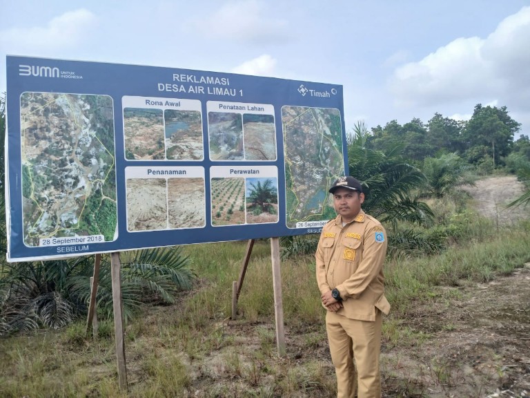 PT Timah berkolaborasi dengan Pemerintah Desa Air Limau menyulap lahan bekas tambang menjadi lahan produktif  untuk perkebunan sawit yang diharapkan menjadi sumber APBDes Air Limau.