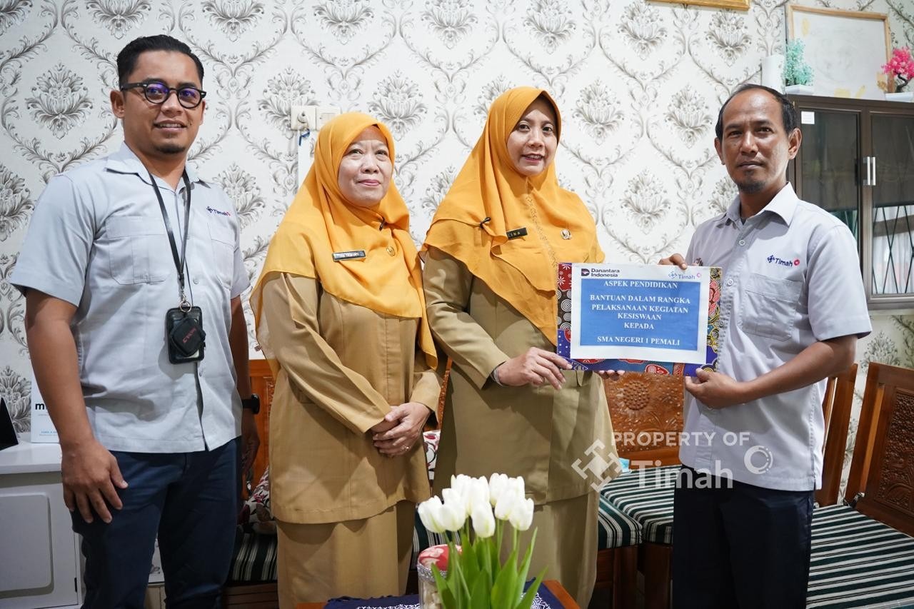 Kepala Sekolah SMAN 1 Pemali, Eflina, mengapresiasi konsistensi PT TIMAH yang selalu hadir mendukung pengembangan kualitas pendidikan siswa khsusunya di SMAN 1 Pemali.