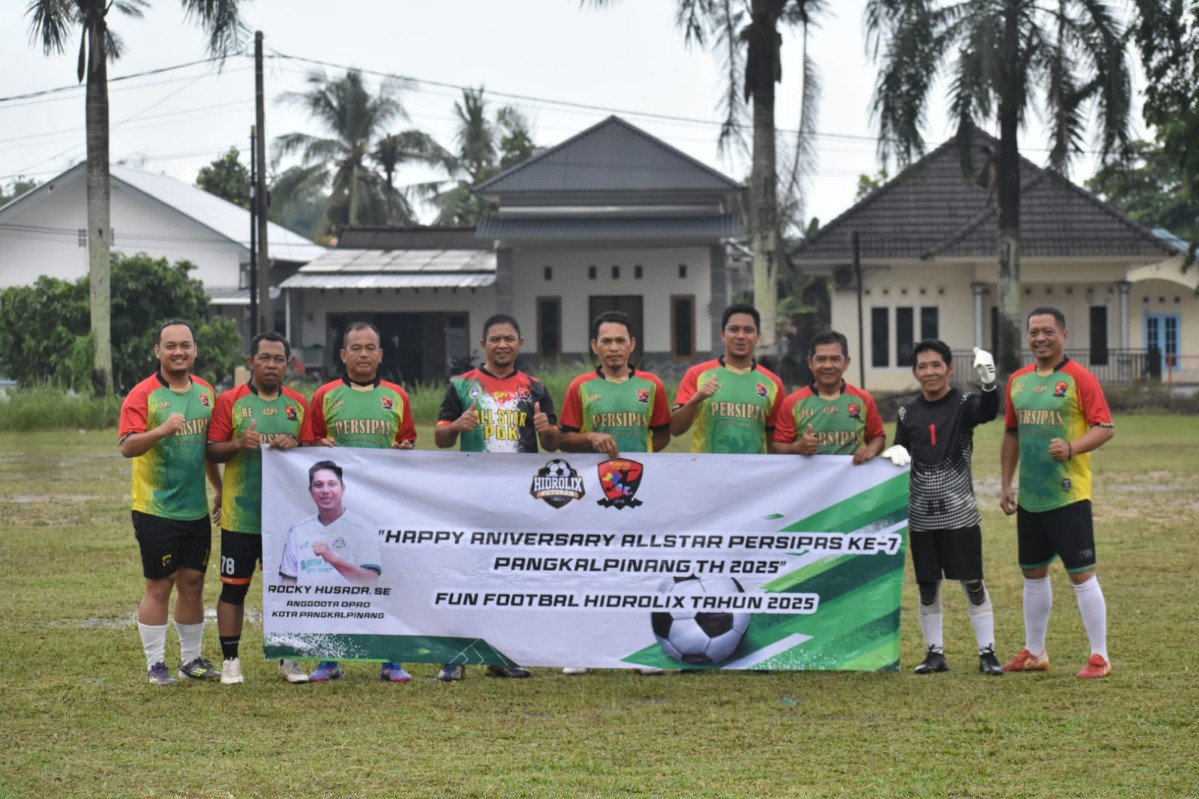 PANGKALPINANG, OkeyBung.com – Keluarga besar All Star Persipas menunjukkan kekompakan luar biasa dalam perayaan Hari Ulang Tahun (HUT) ke-7 tahun yang digelar penuh semangat kebersamaan dan kepedulian sosial. Momen ini mendapat apresiasi tinggi dari Anggota DPRD Kota Pangkalpinang, Rocky Husada yang juga merupakan pemain All Star Persipas.