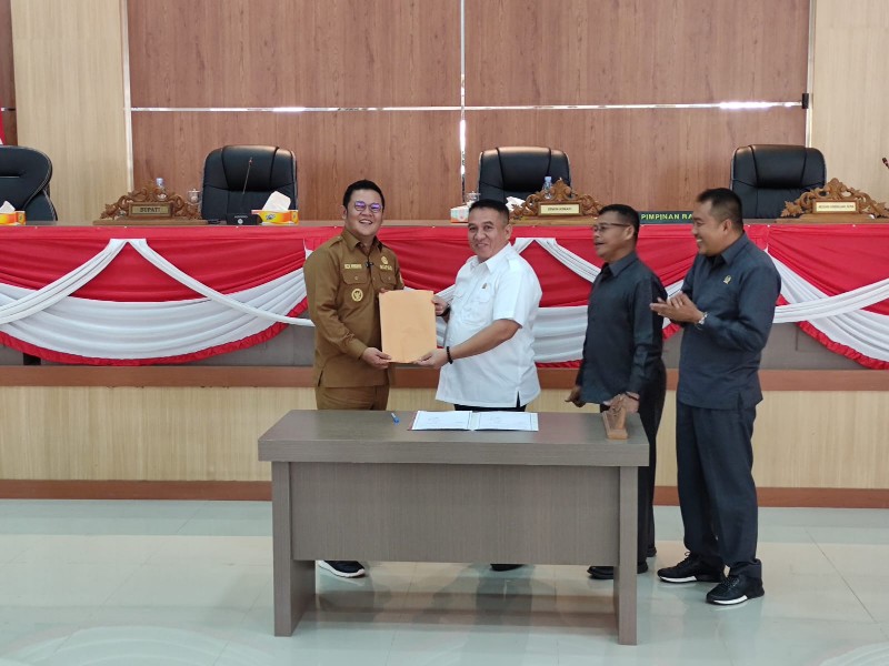 Toboali, Okeybung.com – Bupati Bangka Selatan H. Riza Herdavid, S.T., M.Tr.IP menghadiri Rapat Paripurna DPRD Kabupaten Bangka Selatan dalam acara Pengambilan Keputusan Terhadap Rancangan Peraturan Daerah (Raperda) Tentang Pertanggungjawaban Pelaksanaan Anggaran Pendapatan dan Belanja Daerah (APBD) Tahun Anggaran 2022, di Ruang Paripurna DPRD Kabupaten Bangka Selatan, Senin (07/08/2023).