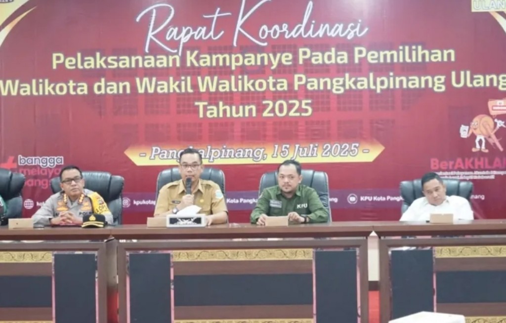 PANGKALPINANG, OkeyBung.com – Sekretaris Daerah Kota Pangkalpinang, Mie Go, menegaskan bahwa kampanye dalam Pilkada 2025 harus dilaksanakan secara tertib dan sesuai aturan. Ia menyampaikan hal ini dalam Rapat Koordinasi Pelaksanaan Kampanye yang digelar KPU Kota Pangkalpinang, Selasa (15/7/2025).