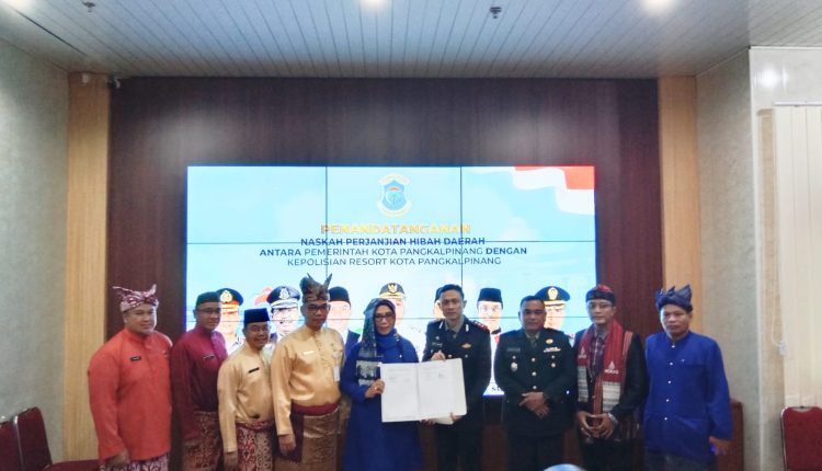 Pangkalpinang, OkeyBung.com – Penjabat Wali Kota Pangkalpinang dan Kepala Kepolisian Resor Kota Pangkalpinang gelar penandatanganan Naskah Perjanjian Hibah Daerah antara Pemerintah Kota Pangkalpinang dan Polresta Pangkalpinang di Smart Room Center (SRC) Kantor Wali Kota Pangkalpinang, Sabtu (1/6/2024).