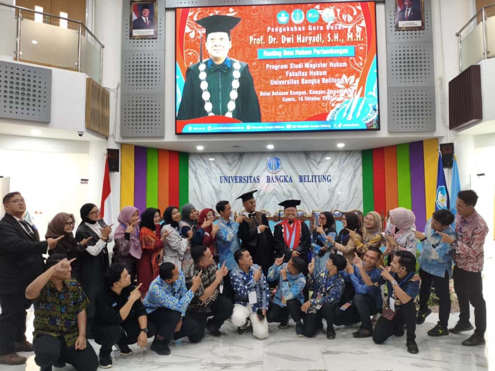 BANGKA, OkeyBung.com Bertempat di Balai Betason Kampus (BBK) Gedung Fakultas Kedokteran dan Ilmu Kesehatan (FKIK) Universitas Bangka Belitung (UBB), Prof. Dr. Ibrahim, M.Si., dan sekaligus sebagai rektor UBB secara resmi telah mengukuhkan Professor ke-tiga di UBB yaitu Prof. Dr. Dwi Haryadi, S.H., M.H dalam bidang hukum pertambangan, pada hari kamis (16/10/25).